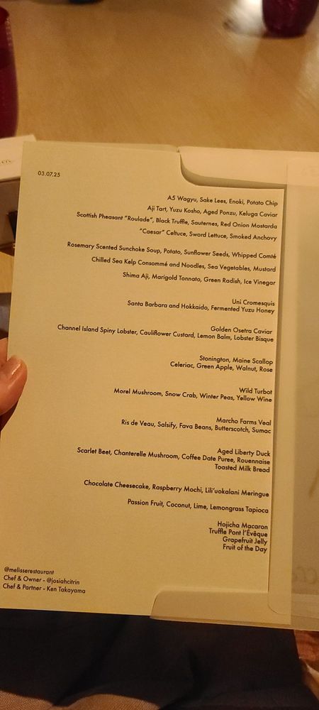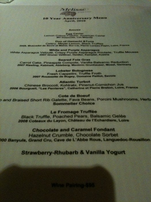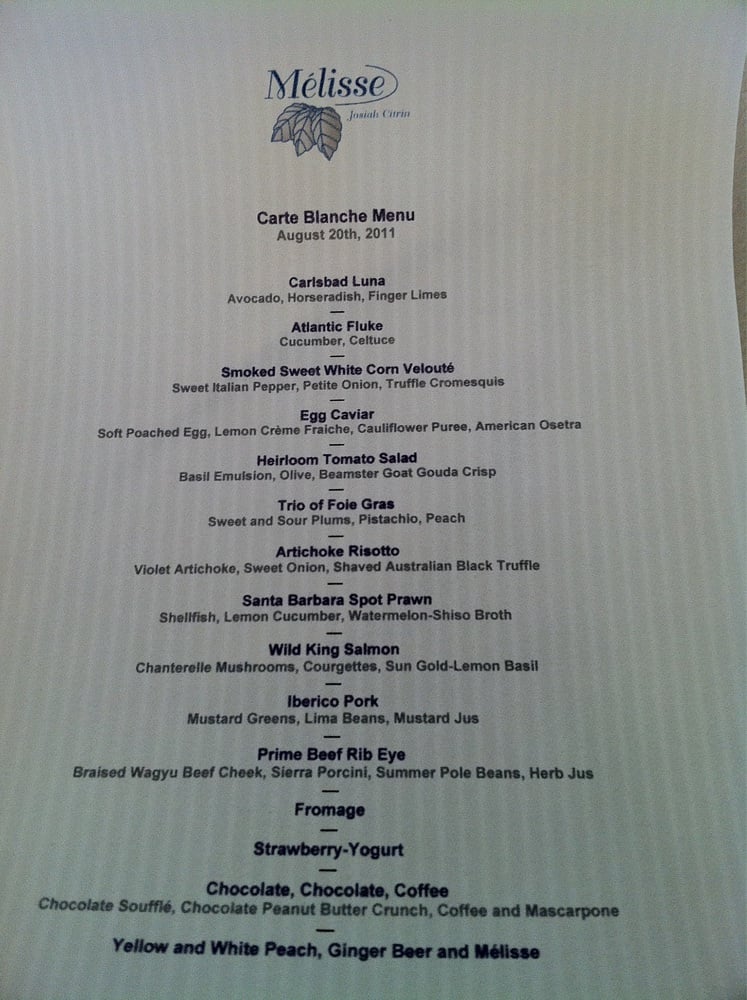 Mélisse Restaurant Menu